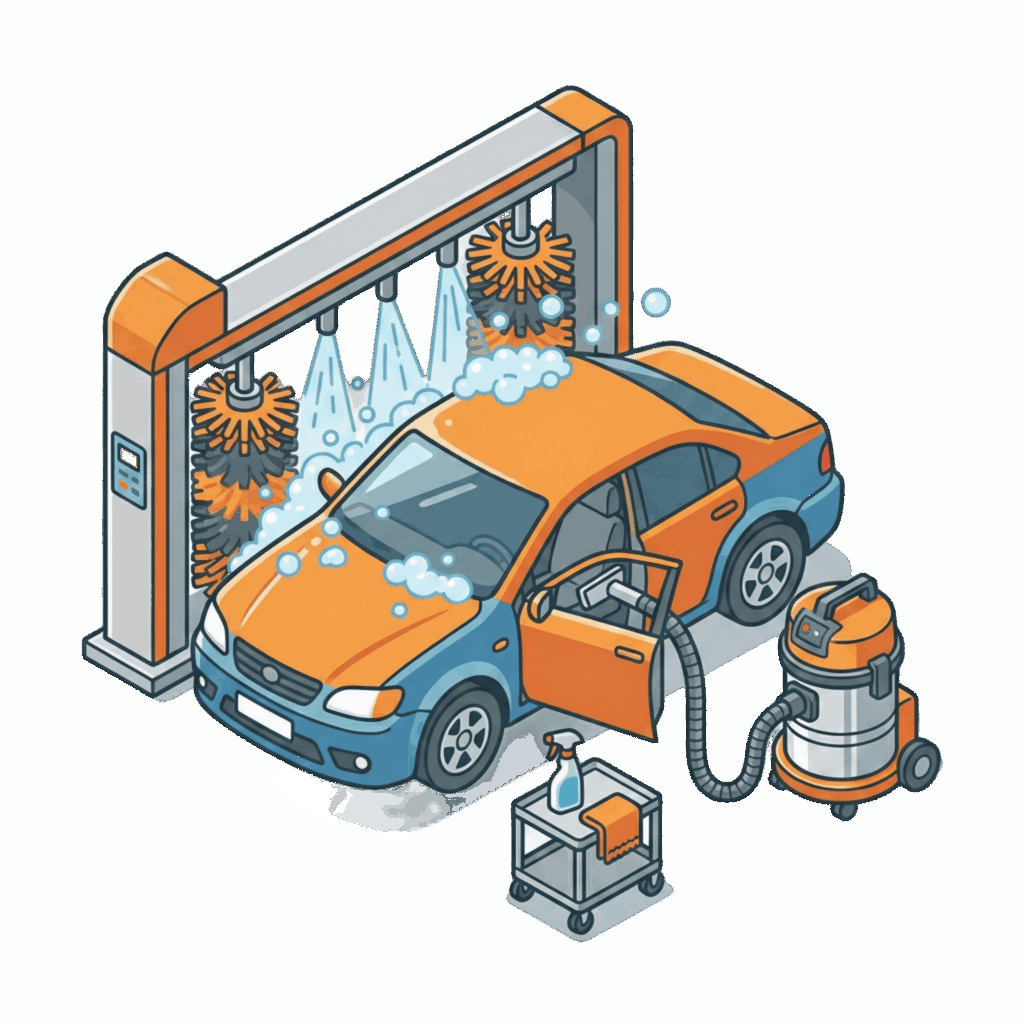 修理完了時の「無料洗車と室内清掃」サービス。修理後はご希望で仕上がり点検やコーティングチェック。