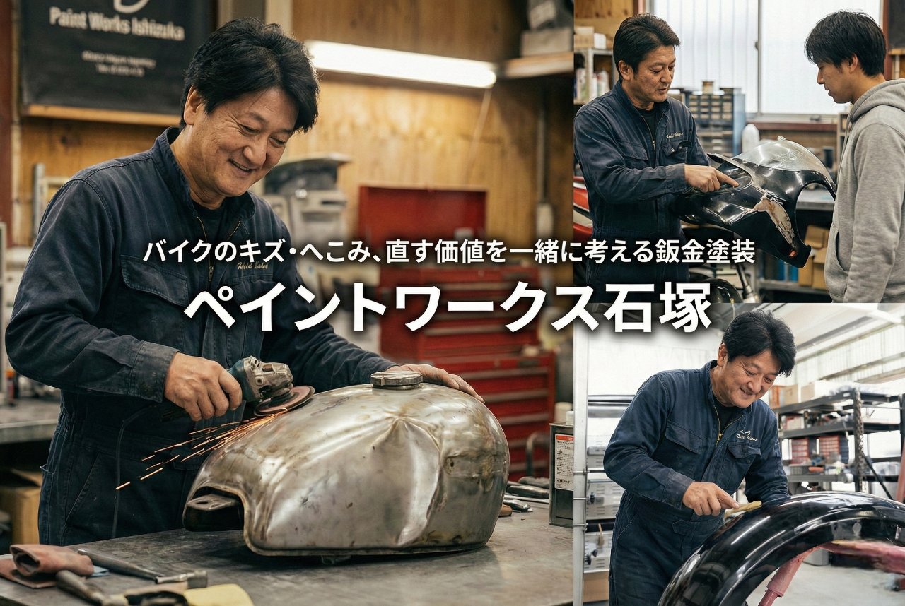 地元の整備工場さんやバイクショップなどからもご依頼をいただきながら、地域の「頼れる鈑金塗装屋さん」として歩んできました。