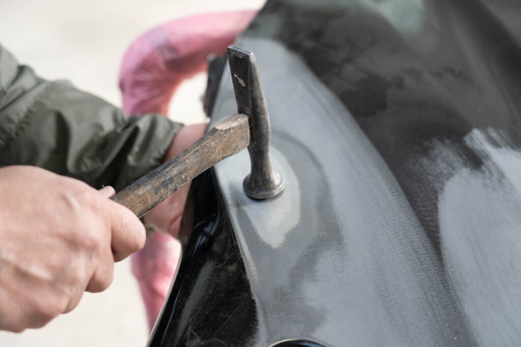 キズ・へこみを叩き出し、引き出し、パテ成形で直します。